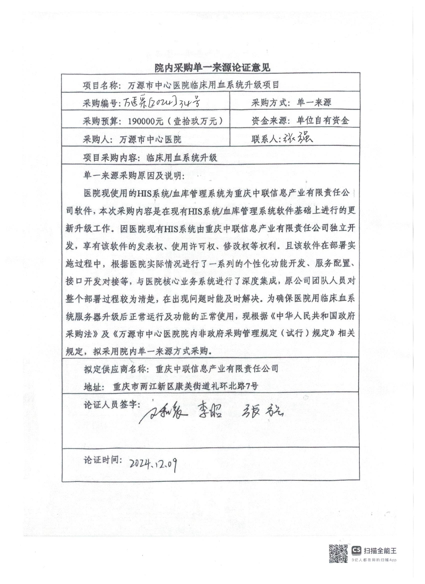 萬(wàn)源市中心醫院臨床用血系統升級項目單一來(lái)源采購公示